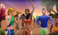 - Vista-se a caráter: Você não quer que os Sims fiquem suando com todo aquele sol, então vista-o com trajes tropicais perfeitos para ir à praia, mergulhar e brincar no oceano. Tome cuidado com as marquinhas de sol! Você também pode decorar o paraíso rústico deles com objetos domésticos ou relaxar no bar tiki.