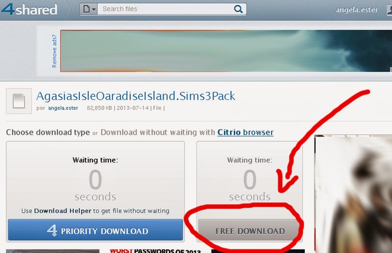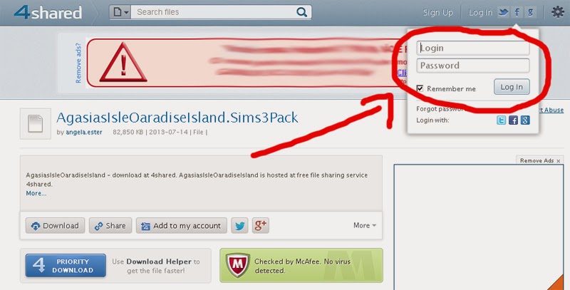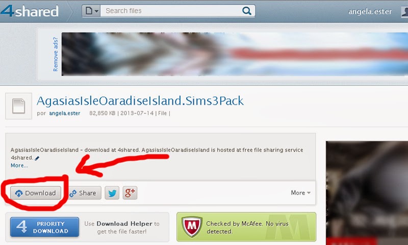 Veja como é fácil fazer o download pelo 4shared das casas, lotes e mundos do blog.